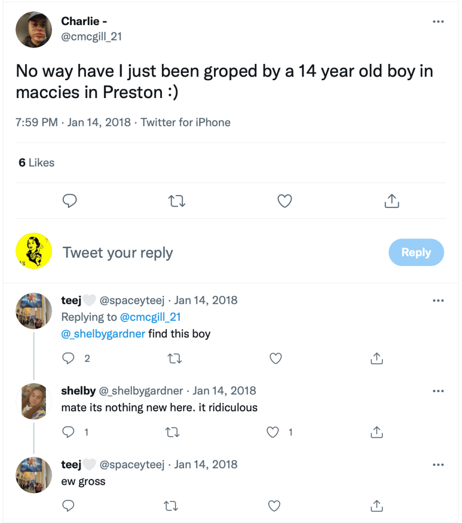 @cmcgill_21: “No way have I just been groped by a 14 year boy in maccies in Preston”