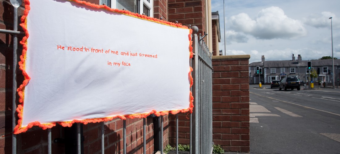 “I was walking home in the afternoon. Two teenage boys came out of Lainés bakery eating pies and one threw a paper bag on the floor. I saw him do this, but didn’t say anything. He walked towards me, stood in front of me and just screamed in my face. I was too scared to say anything back and walked away. I heard his friend ask him why he had done that. He said “Cos she looked at me after I chucked the bag.”
